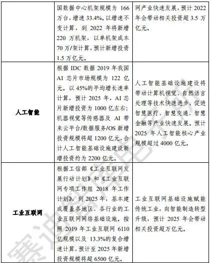 圖/視覺中國 涵蓋三大領(lǐng)域,投資空間巨大 新冠肺炎疫情暴發(fā)以來,中國高層對新基建的重視程度顯著提升。3月4日,中共中央政治局常務(wù)委員會召開會議,明確強(qiáng)調(diào)加快5G網(wǎng)絡(luò)、數(shù)據(jù)中心等新型基礎(chǔ)設(shè)施建設(shè)進(jìn)度。 此后,央視列出了“新基建”主要包括的七大領(lǐng)域:5G基建、特高壓、城際高速鐵路和城市軌道交通、新能源汽車充電樁、大數(shù)據(jù)中心、人工智能、工業(yè)互聯(lián)網(wǎng)。 在4月20日的新聞發(fā)布會上,發(fā)改委創(chuàng)新和高技術(shù)發(fā)展司司長伍浩介紹,新型基礎(chǔ)設(shè)施是以新發(fā)展理念為引領(lǐng),以技術(shù)創(chuàng)新為驅(qū)動,以信息網(wǎng)絡(luò)為基礎(chǔ),面向高質(zhì)量發(fā)展需要,提供數(shù)字轉(zhuǎn)型、智能升級、融合創(chuàng)新等服務(wù)的基礎(chǔ)設(shè)施體系。 他指出,目前來看,新型基礎(chǔ)設(shè)施主要包括三個方面內(nèi)容: 一是信息基礎(chǔ)設(shè)施。主要是指基于新一代信息技術(shù)演化生成的基礎(chǔ)設(shè)施,比如,以5G、物聯(lián)網(wǎng)、工業(yè)互聯(lián)網(wǎng)、衛(wèi)星互聯(lián)網(wǎng)為代表的通信網(wǎng)絡(luò)基礎(chǔ)設(shè)施,以人工智能、云計算、區(qū)塊鏈等為代表的新技術(shù)基礎(chǔ)設(shè)施,以數(shù)據(jù)中心、智能計算中心為代表的算力基礎(chǔ)設(shè)施等。 二是融合基礎(chǔ)設(shè)施。主要是指深度應(yīng)用互聯(lián)網(wǎng)、大數(shù)據(jù)、人工智能等技術(shù),支撐傳統(tǒng)基礎(chǔ)設(shè)施轉(zhuǎn)型升級,進(jìn)而形成的融合基礎(chǔ)設(shè)施,比如,智能交通基礎(chǔ)設(shè)施、智慧能源基礎(chǔ)設(shè)施等。 三是創(chuàng)新基礎(chǔ)設(shè)施。主要是指支撐科學(xué)研究、技術(shù)開發(fā)、產(chǎn)品研制的具有公益屬性的基礎(chǔ)設(shè)施,比如,重大科技基礎(chǔ)設(shè)施、科教基礎(chǔ)設(shè)施、產(chǎn)業(yè)技術(shù)創(chuàng)新基礎(chǔ)設(shè)施等。 “伴隨著技術(shù)革命和產(chǎn)業(yè)變革,新型基礎(chǔ)設(shè)施的內(nèi)涵、外延也不是一成不變的,我們將持續(xù)跟蹤研究?!蔽楹普f。 他表示,近年來,中國新型基礎(chǔ)設(shè)施建設(shè)取得了明顯成效,對高質(zhì)量發(fā)展的支撐作用正在加快釋放。 從信息基礎(chǔ)設(shè)施看,高速光纖已覆蓋全國所有城市、鄉(xiāng)鎮(zhèn)以及99%以上的行政村,4G網(wǎng)絡(luò)用戶超過12億,這方面取得了跨越式發(fā)展和進(jìn)步。 從融合基礎(chǔ)設(shè)施看,智慧城市建設(shè)路徑更加清晰,信息技術(shù)積極賦能城市精細(xì)化管理,助推轉(zhuǎn)型升級的作用日益凸顯。 從創(chuàng)新基礎(chǔ)設(shè)施看,國家發(fā)展改革委已布局建設(shè)55個國家重大科技基礎(chǔ)設(shè)施,在科技創(chuàng)新和經(jīng)濟(jì)發(fā)展中發(fā)揮了引領(lǐng)作用,有力支撐了科學(xué)技術(shù)研究。 21世紀(jì)經(jīng)濟(jì)報道從工信部賽迪智庫獲得的《“新基建”發(fā)展白皮書》指出,“新基建”是與傳統(tǒng)的“鐵公基”相對應(yīng),結(jié)合新一輪科技革命和產(chǎn)業(yè)變革特征,面向國家戰(zhàn)略需求,為經(jīng)濟(jì)社會的創(chuàng)新、協(xié)調(diào)、綠色、開放、共享發(fā)展提供底層支撐的具有乘數(shù)效應(yīng)的戰(zhàn)略性、網(wǎng)絡(luò)型基礎(chǔ)設(shè)施。 白皮書指出,此前央媒列出的七大領(lǐng)域是“新基建”的重要內(nèi)容之一,并詳細(xì)分析了“新基建”在七大領(lǐng)域的建設(shè)內(nèi)容與投資空間。