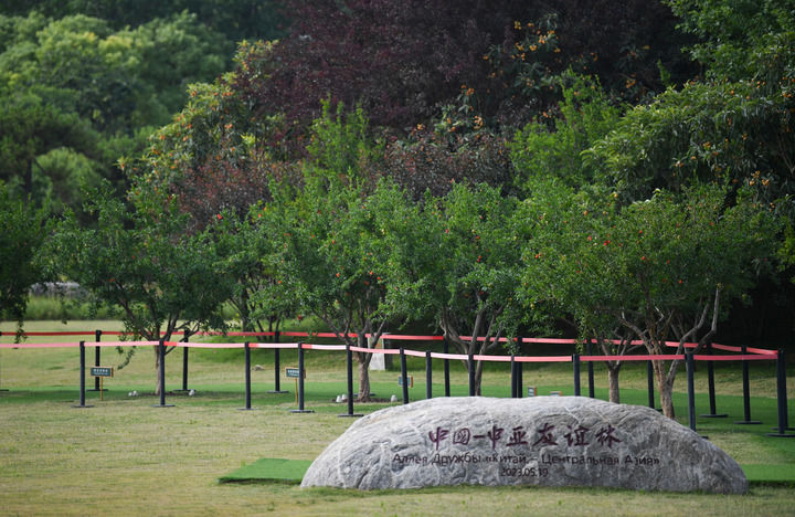??這是2025年5月29日拍攝的位于陜西西安的中國-中亞友誼林。新華社記者 張博文 攝 ??“在長期實踐中,我們探索形成了‘互尊、互信、互利、互助,以高質(zhì)量發(fā)展推進共同現(xiàn)代化’的‘中國-中亞精神’?!绷?xí)近平主席深刻闡釋“中國-中亞精神”的豐富內(nèi)涵,揭示中國同中亞攜手合作的時代意義。 ??大國外交,在文明傳承中汲取前行智慧,于歷史奔流中錨定時代航標(biāo)。 ??“絲綢之路精神”“中國-中亞精神”“中法建交精神”“中非友好合作精神”“上海精神”“金磚精神”……中國外交倡導(dǎo)和踐行的每一種精神,都蘊含著關(guān)照現(xiàn)實的深邃思索,融匯為貫古通今的時代表達。