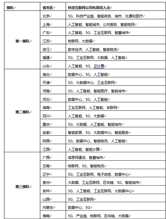 今年政府工作報(bào)告明確,重點(diǎn)支持“兩新一重”建設(shè)。為響應(yīng)中央號(hào)召,各地陸續(xù)出臺(tái)了新基建相關(guān)政策。在新基建的投資浪潮下,具備技術(shù)和資金實(shí)力的科技互聯(lián)網(wǎng)公司再次迎來(lái)歷史發(fā)展機(jī)遇。那么,目前各地新基建投資布局有何特點(diǎn)?如何吸引民資入局?頭部科技互聯(lián)網(wǎng)公司如何與政府合作布局新基建?各自?xún)?yōu)勢(shì)和模式是什么? 新基建的兩大含義是什么? 疫情爆發(fā)以來(lái),“新基建”作為應(yīng)對(duì)新冠疫情沖擊拉動(dòng)投資需求、推動(dòng)經(jīng)濟(jì)轉(zhuǎn)型升級(jí)的重大戰(zhàn)略屢次出現(xiàn)在國(guó)家文件中,“新基建”的概念也逐漸為大眾熟知。但由于官方此前并未直接給新基建定義,故外界的討論多援引官媒對(duì)“新基建”的定義。比如,新華社《瞭望》3月刊文,稱(chēng)新基建本質(zhì)上是信息數(shù)字化的基礎(chǔ)設(shè)施;央視3月在節(jié)目中把新基建定義為發(fā)力于科技端的基礎(chǔ)設(shè)施建設(shè),將新基建概括為5G基建、特高壓、城際高速鐵路和城際軌道交通、新能源汽車(chē)充電樁、大數(shù)據(jù)中心、人工智能、工業(yè)互聯(lián)網(wǎng)等七大領(lǐng)域。新華網(wǎng)3月底刊文指出,廣義新基建側(cè)重于“補(bǔ)短板”,涉及軌交、核電、特高壓、充電樁,狹義新基建側(cè)重于“促創(chuàng)新”,包含IDC、5G網(wǎng)絡(luò)建設(shè)、物聯(lián)網(wǎng)、人工智能、工業(yè)互聯(lián)網(wǎng)。 直到4月20日的發(fā)改委新聞發(fā)布會(huì)上,官方首次定調(diào)新基建。發(fā)改委新聞發(fā)言人明確“新基建”包括信息基礎(chǔ)設(shè)施、融合基礎(chǔ)設(shè)施、創(chuàng)新基礎(chǔ)設(shè)施三個(gè)方面。其中信息基礎(chǔ)設(shè)施主要指基于新一代信息技術(shù)演化生成的基礎(chǔ)設(shè)施,如以5G、物聯(lián)網(wǎng)、工業(yè)互聯(lián)網(wǎng)、衛(wèi)星互聯(lián)網(wǎng)為代表的通信網(wǎng)絡(luò)基礎(chǔ)設(shè)施,以人工智能、云計(jì)算、區(qū)塊鏈等為代表的新技術(shù)基礎(chǔ)設(shè)施,以數(shù)據(jù)中心、智能計(jì)算中心為代表的算力基礎(chǔ)設(shè)施等;融合基礎(chǔ)設(shè)施主要指深度應(yīng)用互聯(lián)網(wǎng)、大數(shù)據(jù)、人工智能等技術(shù),支撐傳統(tǒng)基礎(chǔ)設(shè)施轉(zhuǎn)型升級(jí),進(jìn)而形成的融合基礎(chǔ)設(shè)施,如智能交通基礎(chǔ)設(shè)施、智慧能源基礎(chǔ)設(shè)施等;創(chuàng)新基礎(chǔ)設(shè)施主要指支撐科學(xué)研究、技術(shù)開(kāi)發(fā)、產(chǎn)品研制的具有公益屬性的基礎(chǔ)設(shè)施,如重大科技基礎(chǔ)設(shè)施、科教基礎(chǔ)設(shè)施、產(chǎn)業(yè)技術(shù)創(chuàng)新基礎(chǔ)設(shè)施等內(nèi)容。 發(fā)改委指出,新型基礎(chǔ)設(shè)施是以新發(fā)展理念為引領(lǐng),以技術(shù)創(chuàng)新為驅(qū)動(dòng),以信息網(wǎng)絡(luò)為基礎(chǔ),面向高質(zhì)量發(fā)展需要,提供數(shù)字轉(zhuǎn)型、智能升級(jí)、融合創(chuàng)新等服務(wù)的基礎(chǔ)設(shè)施體系。 綜上來(lái)看,此前央媒定義的信息數(shù)字化的基礎(chǔ)設(shè)施、科技端的基礎(chǔ)設(shè)施建設(shè)以及5G基建、特高壓、城際高速鐵路和城際軌道交通等七大領(lǐng)域均是新基建的重要組成部分,但并不能涵蓋新基建的全部?jī)?nèi)容。 新基建應(yīng)包含兩方面的含義,一方面是核心技術(shù)層,包括5G、大數(shù)據(jù)、人工智能、云計(jì)算、物聯(lián)網(wǎng)和區(qū)塊鏈等前沿技術(shù);另一方面是實(shí)踐應(yīng)用層,既包括5G基站、數(shù)據(jù)中心建設(shè)等新基建,也包括對(duì)交通、能源、電信、水利、環(huán)保等現(xiàn)有基礎(chǔ)設(shè)施的智能化、數(shù)字化改造升級(jí),以及支撐科學(xué)研究、技術(shù)開(kāi)發(fā)、產(chǎn)品研制的具有公益屬性的基礎(chǔ)設(shè)施等。 未來(lái),隨著經(jīng)濟(jì)發(fā)展水平的變化、經(jīng)濟(jì)結(jié)構(gòu)的調(diào)整、技術(shù)的進(jìn)步,“新基建”的外延和內(nèi)涵還將不斷變化和擴(kuò)大,只要符合“高質(zhì)量發(fā)展”、“新發(fā)展理念”、“技術(shù)驅(qū)動(dòng)”、“數(shù)字化轉(zhuǎn)型”、“智能升級(jí)”、“融合創(chuàng)新”等內(nèi)涵均可列入新基建范疇。 各地布局有何優(yōu)勢(shì)? 2020年《政府工作報(bào)告》明確提出,重點(diǎn)支持“兩新一重”(新型基礎(chǔ)設(shè)施建設(shè),新型城鎮(zhèn)化建設(shè),交通、水利等重大工程)建設(shè)。為響應(yīng)中央號(hào)召,今年來(lái),各地陸續(xù)出臺(tái)了新基建相關(guān)政策,主要包括各省(區(qū)、市)《政府工作報(bào)告》對(duì)推進(jìn)新基建的部署、發(fā)展優(yōu)勢(shì)產(chǎn)業(yè)的專(zhuān)項(xiàng)政策以及招商引資相關(guān)政策。 從各地新基建的政策布局來(lái)看,地方納入新基建的布局和項(xiàng)目比發(fā)改委界定的范圍更廣;各地新基建的政策布局主要依據(jù)自身優(yōu)勢(shì)、產(chǎn)業(yè)特點(diǎn)、新基建短板以及吸引投資等四個(gè)維度來(lái)考量;北京、河南、山東、河北、廣東、廣西、海南、重慶和陜西等省份在新基建方面的扶持政
