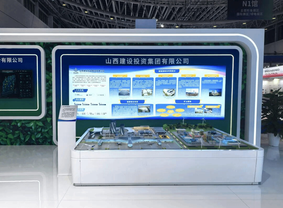 在新能源展區(qū),集團通過實物模型、動態(tài)沙盤、圖文展板及宣傳視頻等多種形式,多角度全方位呈現(xiàn)了覆蓋能源供給、建筑運行、材料研發(fā)、生態(tài)治理及智能運維的全鏈條技術體系。