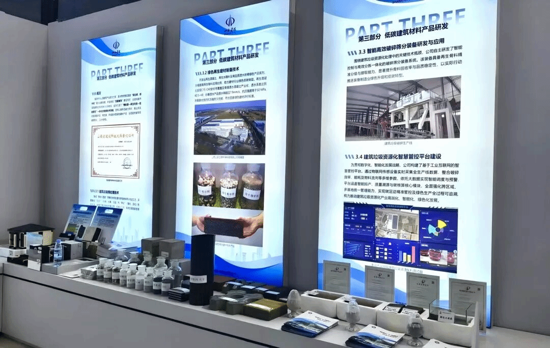 低碳建筑材料產(chǎn)品研發(fā)展區(qū),展示了低碳建材領域的煤基固廢高值化利用、綠色再生建材。