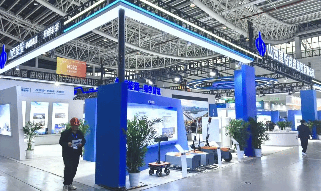 在主題形象展區(qū),集團展示了山西?瀟河新城在綠色建造與低碳運行方面的實踐成果,以及零碳機場建設、綠色化工、固廢綜合利用等方面的突出成效。集團自主研發(fā)的石材磚鋪貼、激光地面整平、履帶地面抹平、四盤地面抹光、噴刮打磨一體、實測實量、消防值守等建筑機器人,也成為關注焦點,生動展示了智能建造與綠色施工的深度融合。
