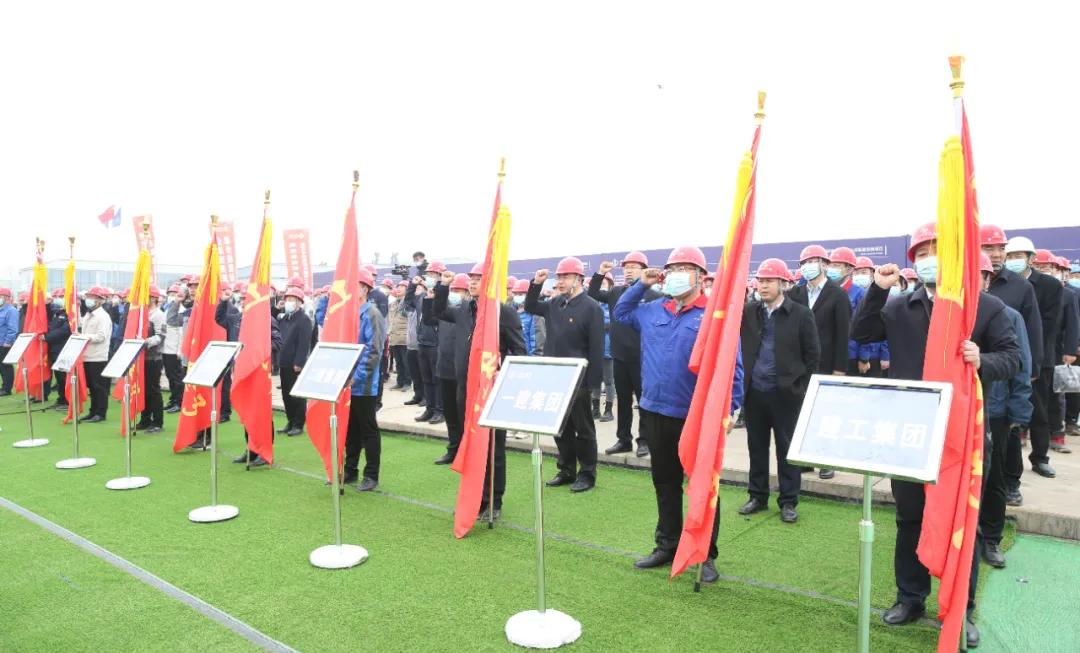 不負(fù)春光好,項(xiàng)目施工忙。3月27日,山西•瀟河新城國際會議中心項(xiàng)目工地,數(shù)百名建設(shè)者們莊嚴(yán)宣誓:“統(tǒng)一思想,堅定信念;嚴(yán)抓安全,消除隱患;精益求精,質(zhì)量為先;攻堅克難,誓保節(jié)點(diǎn);使命必達(dá),爭創(chuàng)標(biāo)桿。”當(dāng)日,山西建投集團(tuán)2021年重點(diǎn)工程暨山西·瀟河新城專項(xiàng)勞動競賽拉開大幕,集團(tuán)黨委書記、董事長孫波宣布競賽啟動。