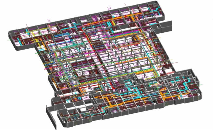 項(xiàng)目團(tuán)隊(duì)充分發(fā)揮EPC總承包的全過程管控優(yōu)勢,在設(shè)計(jì)階段即實(shí)施精益管理創(chuàng)效。通過組建“設(shè)計(jì)+施工”聯(lián)合工作組,運(yùn)用BIM技術(shù)開展全專業(yè)協(xié)同設(shè)計(jì),累計(jì)優(yōu)化解決圖紙問題近200處,實(shí)現(xiàn)設(shè)計(jì)施工一體化融合,直接降低施工變更成本1.3%,縮短工期26天。針對醫(yī)療建筑特有的復(fù)雜機(jī)電系統(tǒng)(涵蓋給排水、消防、智能化、醫(yī)療氣體等9大專業(yè)),采用“BIM+模塊化”施工策略,先通過三維激光掃描建立實(shí)景模型,再運(yùn)用BIM技術(shù)進(jìn)行管線綜合排布優(yōu)化,最終形成裝配式施工方案。該方案使管綜凈空提升0.6米,管線交叉點(diǎn)減少12.5%,實(shí)現(xiàn)有限空間內(nèi)各系統(tǒng)的高效集成與藝術(shù)化呈現(xiàn),提高機(jī)電工程一次安裝合格率。