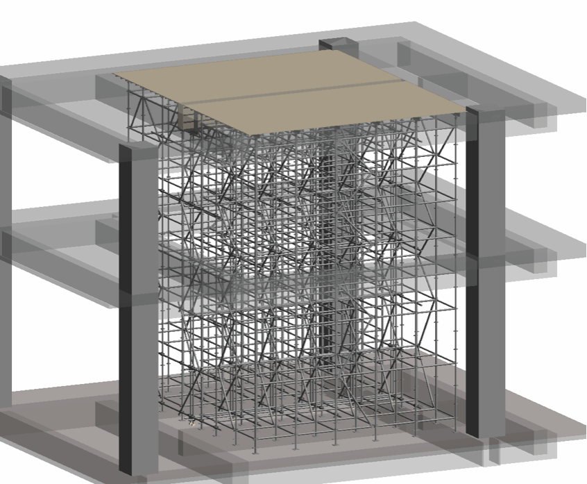 在主體結構施工中,項目團隊面臨多項超危工程挑戰(zhàn):結構挑檐外挑4米、搭設高度達19.8米,形成超高超重支模體系;中空大廳支模高度11米,空間開闊,穩(wěn)定性控制要求嚴苛;會議室大截面梁施工超出常規(guī)限值。這些作業(yè)點技術復雜、工期緊張,安全風險極高。