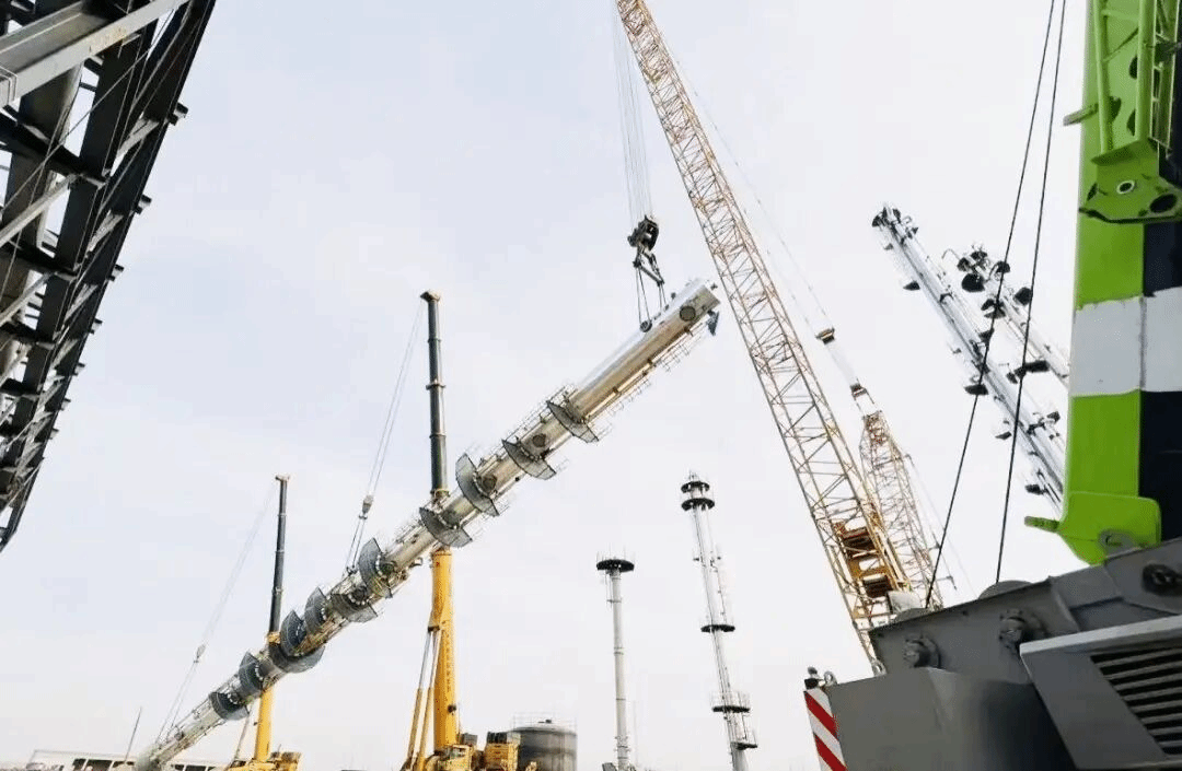 在氣化裝置大型設(shè)備吊裝階段,項(xiàng)目團(tuán)隊(duì)面臨汽化爐、轉(zhuǎn)化爐等設(shè)備在復(fù)雜框架內(nèi)精準(zhǔn)就位的挑戰(zhàn)。通過(guò)多輪模擬演練和專項(xiàng)技術(shù)交底,團(tuán)隊(duì)創(chuàng)新實(shí)施“多司索指揮接替”模式:在樓頂、地面、設(shè)備基礎(chǔ)位分設(shè)專業(yè)指揮,由總指揮統(tǒng)一統(tǒng)籌協(xié)調(diào),根據(jù)設(shè)備吊裝高度與位置分階段交接指揮權(quán);同時(shí)配置倒鏈繩索協(xié)同組,實(shí)時(shí)調(diào)整設(shè)備位置。最終所有設(shè)備安全就位,安裝誤差均控制在設(shè)計(jì)允許范圍內(nèi),展現(xiàn)了團(tuán)隊(duì)的技術(shù)實(shí)力與協(xié)作水平。