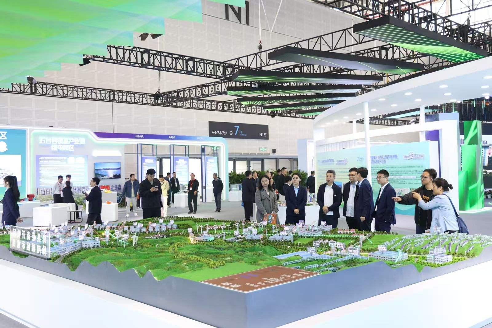 氛圍營造與宣傳推廣則體現(xiàn)了團隊的創(chuàng)意與執(zhí)行力。通過場館內(nèi)外視覺系統(tǒng)的統(tǒng)一規(guī)劃,電子屏與展板的有機結(jié)合,讓“綠色低碳轉(zhuǎn)型發(fā)展”的主題深入人心。