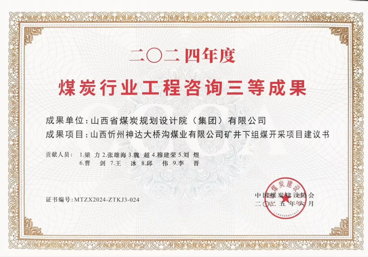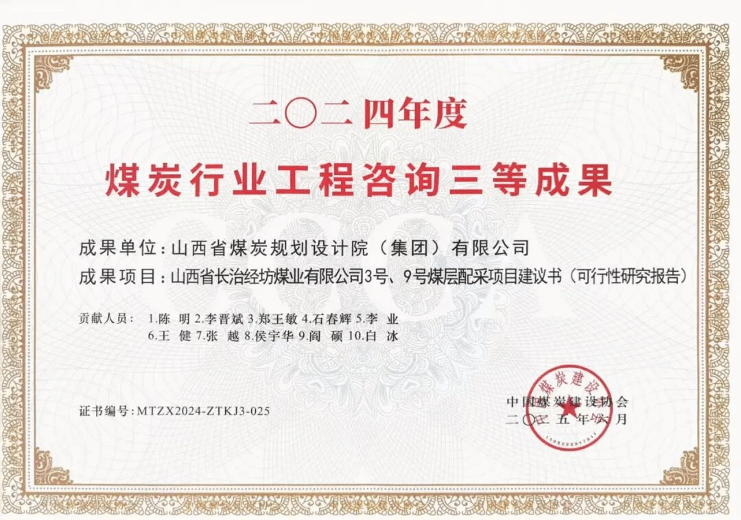 近日,中國煤炭建設(shè)協(xié)會公布2024年度煤炭行業(yè)優(yōu)秀工程咨詢成果獲獎名單,山西建投煤規(guī)院集團(tuán)斬獲四項(xiàng)煤炭行業(yè)(部級)工程咨詢?nèi)瘸晒劇?/span>