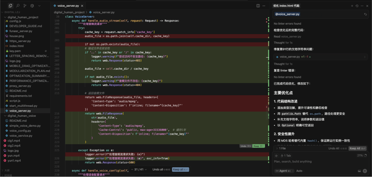 在企業(yè)數(shù)字人開發(fā)全流程中,公司創(chuàng)新性應(yīng)用了人工智能大模型的標(biāo)準(zhǔn)化代碼生成能力,在確保系統(tǒng)架構(gòu)、功能邏輯、源代碼等關(guān)鍵環(huán)節(jié)、技術(shù)自主可控的前提下,實(shí)現(xiàn)利用大模型進(jìn)行企業(yè)數(shù)字人代碼開發(fā)的自動(dòng)化編程、智能優(yōu)化調(diào)試及測(cè)試,使研發(fā)人員將工作重心從基礎(chǔ)代碼編寫轉(zhuǎn)向?qū)诵哪P图按a框架進(jìn)行精細(xì)調(diào)優(yōu),這不僅顯著縮短了開發(fā)周期、提升了開發(fā)效率,更從根本上保障了底層技術(shù)的可靠性與先進(jìn)性,為提升產(chǎn)品質(zhì)量奠定了堅(jiān)實(shí)基礎(chǔ)。
