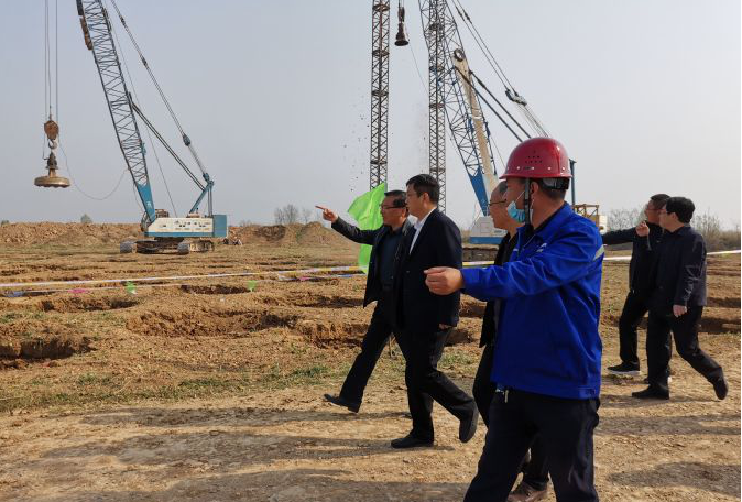 調研組參觀了施工現(xiàn)場,聽取了對強夯施工工程質量、安全文明建設及施工進度情況匯報。尚玉良對項目復工復產、施工質量、安全管理等工作成效給予充分肯定,他強調,要在保證施工安全的前提下,嚴格把控項目質量,保障實體項目早日安全投入運營。