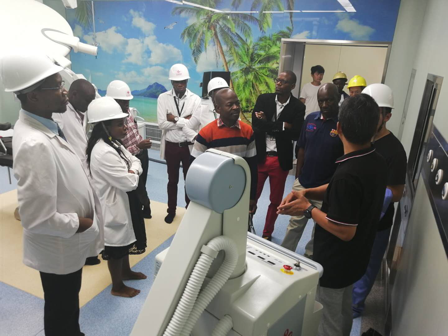 當(dāng)?shù)卮_診患者緊急入院治療期間,因事發(fā)突然,新建醫(yī)院的各項(xiàng)儀器和設(shè)備正在調(diào)試之中,新進(jìn)駐的當(dāng)?shù)蒯t(yī)護(hù)人員對有關(guān)醫(yī)療設(shè)備使用尚不明確。為了幫助贊方醫(yī)務(wù)人員盡快開展工作,項(xiàng)目部專業(yè)工程師發(fā)揚(yáng)人道主義精神,不顧個人安危,深入病區(qū)為醫(yī)護(hù)人員演示和實(shí)操各類醫(yī)療設(shè)備,對各類儀器的使用方式進(jìn)行了細(xì)致的業(yè)務(wù)培訓(xùn),確保醫(yī)務(wù)人員全部掌握。