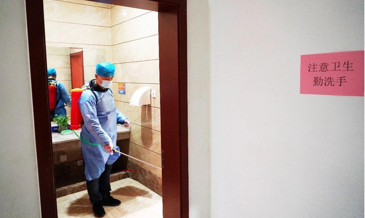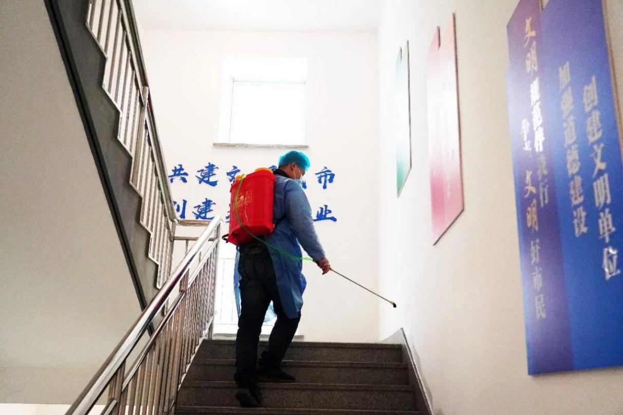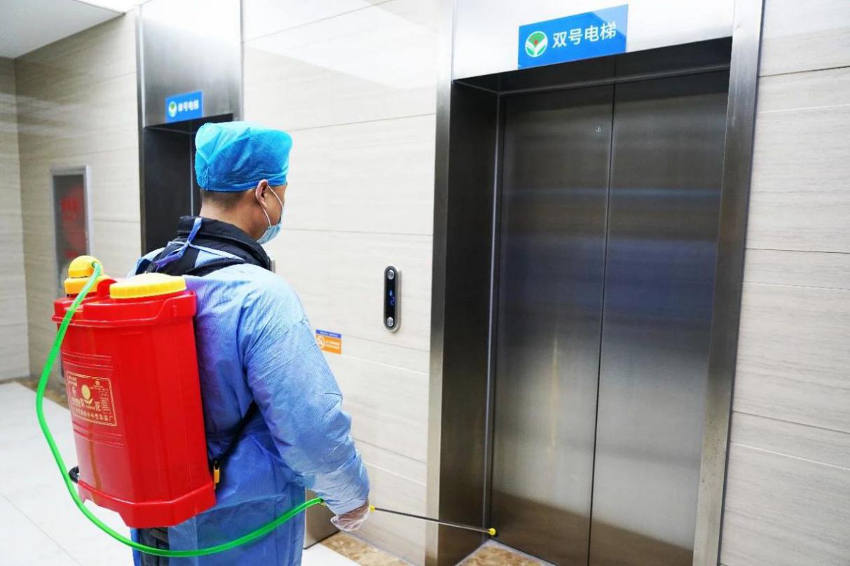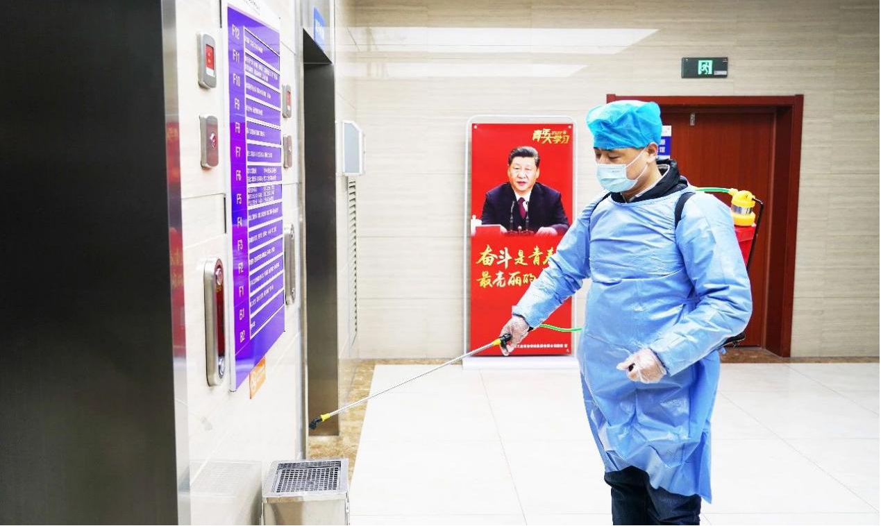 每4小時,對門廳、樓道、電梯、衛(wèi)生間等公共區(qū)域,通過噴灑84消毒液等方式進行消毒。每日下班后,對辦公區(qū)域進行全覆蓋、無死角的清理消毒。