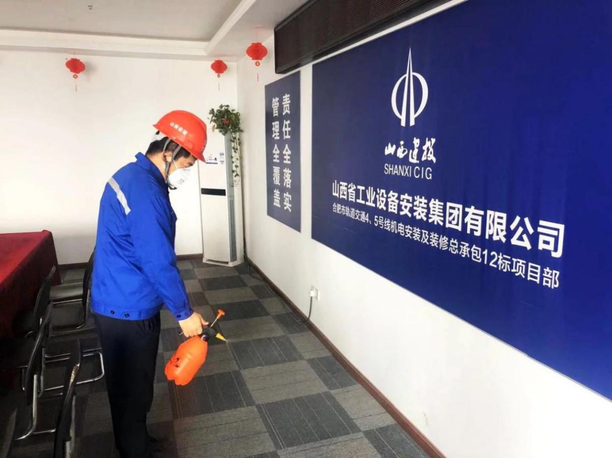 ▲上海山安(華東分部)合肥地鐵項目對辦公區(qū)進行消毒