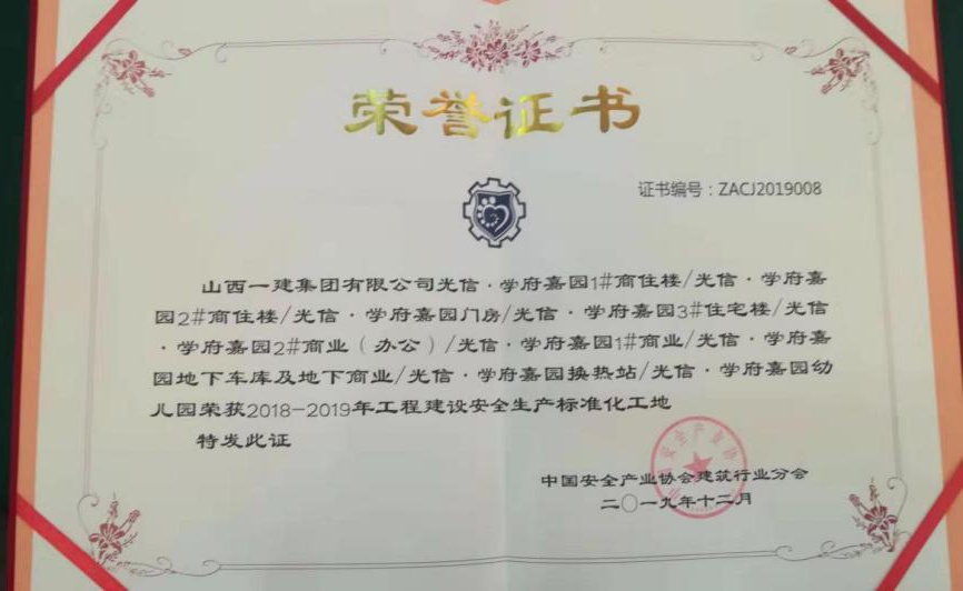 12月22日,中國安全生產(chǎn)協(xié)會建筑行業(yè)分會2019年年會在杭州舉行。會上,對2019年安全生產(chǎn)先進單位進行了表彰,公司承建的光信·學府嘉園項目榮獲“2018-2019年工程建設安全生產(chǎn)標準化工地”,第九分公司安全科李高平代表領獎。