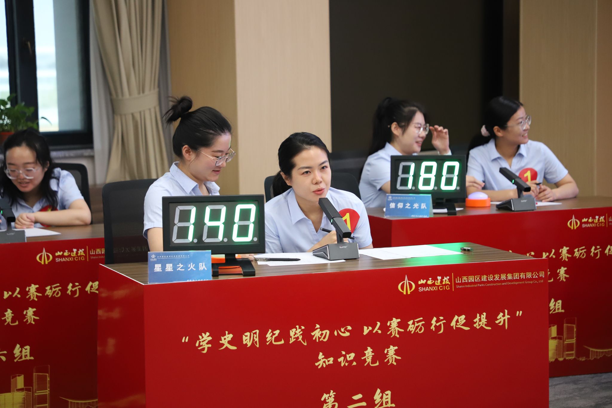 本次競賽分為初賽和決賽兩個階段,由集團各黨支部選送的8支代表隊16名選手參賽。比賽集知識性、競爭性為一體,內(nèi)容緊扣黨史知識,通過個人必答、小組共答、搶答和風(fēng)險答題等環(huán)節(jié),全方位、多層次考驗選手們的理論功底、知識儲備與臨場應(yīng)變能力?,F(xiàn)場,參賽選手們個個反應(yīng)敏捷、回答踴躍,氣氛緊張熱烈,充分彰顯了新時代園區(qū)建發(fā)人良好的團隊協(xié)作精神和昂揚進取的奮斗姿態(tài)。經(jīng)過多輪緊張激烈的角逐,最終紅旗先鋒隊獲得一等獎,信仰之光隊獲得二等獎,時代答卷人隊獲得三等獎,敢想敢做隊獲得優(yōu)秀組織獎。